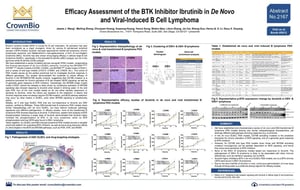 在这张海报中,我们的DLBCL模型和EBV诱导的淋巴瘤PDX模型为评估BTK抑制剂提供了一个极有帮助的临床前平台,同时也为未来在BCR和MYD88途径中的其他靶点如PI3K,SYK和IRAK4提供帮助。