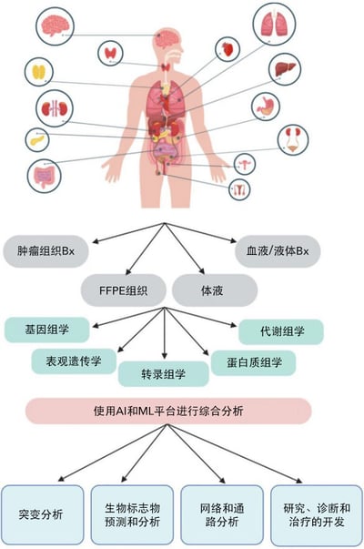 对于癌症等高度复杂的疾病,NGS 在诊断、预后和治疗检测中发挥愈加重要的作用(图1)。此外,液体活检的受关注度以及应用机会均在不断增大,其原理为通过血样来检测血液循环中的癌细胞或 DNA,并减少对高侵入性活组织检查的依赖。由于癌症早期检测与治疗结果和生存率密切相关,因此开发出基于 NGS 的多基因检测的技术与日俱增。