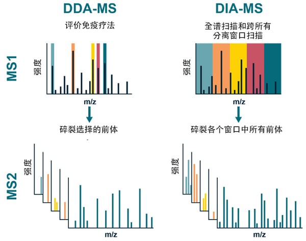 DDA 模式:质谱仪选择固定数量的强度最高的前体离子。然后,在串联质谱法的第二阶段,对这些前体离子进行碎裂分析。
